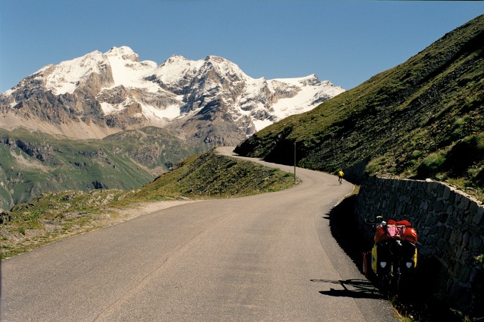 Po dziewiętnastogodzinnej jeździe autobus wtoczył się na dworzec w Zurychu. Wyciągam rower z luków bagażowych (jak zwykle zmieścił się w nich bez problemu, zajmując nawet mniej miejsca niż niektóre z większych toreb innych pasażerów) i „ubieram” go w sakwy. Otwieram jeszcze butelkę przywiezionego z Polski napoju. Pod kapslem widnieje napis „Co ma być, to będzie” – niezłe hasło jak na początek wyprawy. Ruszam w drogę. Przypomina mi się moja wyprawa z 1998 roku przez najwyższe drogowe przełęcze Europy położone w Alpach, Pirenejach i Sierra Nevada. Rozpocząłem ją dokładnie z tego samego miejsca, pierwsze 100 km jadąc taką samą trasą. Nawet pogoda teraz jest podobna – niebo zachmurzone i co jakiś czas siąpi deszczyk. Jak to zwykle bywa początek jest trudny. Organizm buntuje się przed długotrwałym, dużym wysiłkiem, daje znać o sobie zmęczenie wielogodzinną podróżą autobusem. Na szczęście pierwszy dzień to jazda niemal wyłącznie po płaskim terenie. Po przejechaniu 72 km docieram do miejsca, w którym nocowałem w 1998 r. Od tego czasu nic się tu nie zmieniło – mały cypel położony nad brzegiem Jeziora Czterech Kantonów, doskonale „zamaskowany”, wydaje się być idealnym miejscem na biwak. Pomimo, że w Szwajcarii nocowanie „na dziko” jest zabronione, to odpowiednio postępując da się w ten sposób „kwaterować”. Rozbijam namiot, zażywam kąpieli w ciepłych wodach jeziora, po czym na kolację zalewam wrzątkiem zupkę chińską. No, to teraz już naprawdę czuję (i smakuję), że jestem na wyprawie.