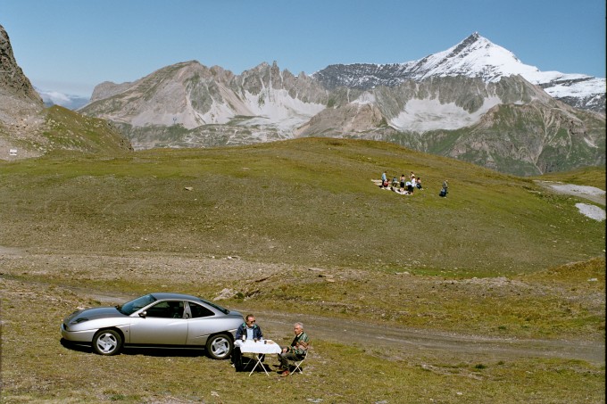 Budzik rozdarł się o godzinie 6. A by go... A tak dobrze mi się spało. W nocy było bardzo zimno, poranne bezchmurne niebo zwiastuje kolejny piękny dzień. Tak trzymać! Słońce zapala najwyższe szczyty, stopniowo obejmując coraz większy obszar. Rysiek przyszedł do mnie z wizytą. Objadając się bananami porozmawialiśmy trochę o turystyce i kilku innych sprawach. W końcu trzeba się było pożegnać. Choć jedziemy w tym samym kierunku, to jednak tico jest nieco szybsze. Po starcie jeszcze 3 km jadę wzdłuż jeziora. Mijam zaporę, po czym zaczyna się zjazd do Włoch. O ludzie! Nigdy bym nie przypuszczał, że będzie tak długi i stromy. Ponad 20 km bardzo ostrego zjazdu w upale rozgrzewa obręcze do granic wytrzymałości. Aż trzykrotnie zatrzymuję się, by schłodzić je wodą, która z sykiem paruje. Docieram do Susa, przejeżdżam przez centrum miasteczka, jadę chwilę główną drogą w kierunku Torino, by następnie skręcić na trasę prowadzącą na przełęcz Colle delle Finestre. Czeka mnie 19 km podjazdu na wysokość blisko 2200 m n.p.m. Nie wiem jakim cudem mam tego dokonać zważywszy na upał i ogólną niemoc, jaka mnie w tej chwili dopadła. Mission: Impossible. Z trudem wziąłem się w garść – nie ma rady, trzeba dymać! Pierwsze 3 km to stromizna grubo przekraczająca normę przyzwoitości. Ledwie zipię, zatrzymuję się co chwilę by złapać oddech. Umieram! Skwar, ciężki rower, pot zalewający oczy. W końcu mijam ostatnie zabudowania. Jakość asfaltu się pogarsza, a droga wprowadza do lasu. Nachylenie nieco łagodnieje, ale wciąż jest bardzo trudno. Gdy tak przeżywam swoją gehennę mija mnie tico. Znajomi zatrzymują się. Jola częstuje mnie cudownie zimnym arbuzem (co za rozkosz, dzięki!), a Ryszard mówi, że nie widząc mnie po drodze myślał, że zatrzymałem się w Susa coś zjeść. Dziwi się, że w tak krótkim czasie mogłem zajechać tak daleko. Żartowniś. Gdy go uświadamiam, że do przełęczy pozostało jeszcze kilkanaście kilometrów podjazdu zasępił się, przez chwilę pomyślał, po czym powiedział, że tego nie można tak zostawić. Oświadczył, że... weźmie mnie na hol. Potraktowałem to jak dobry dowcip, ale widzę, że zabrał się poważnie do działania. Z pokrowca na śpiwór wymontował dwa grube sznurki, które związał ze sobą. Jeden koniec zaczepił o zawias tylnej klapy samochodu, do drugiego końca, z braku czego innego, przywiązał drucianą szczotkę do włosów, by lepiej mi było trzymać. Byliśmy gotowi. Auto ruszyło bardzo powoli, sznurek się naprężył. Poczułem lekkie szarpnięcie i rower ruszył. Jednak po przejechaniu 30 metrów nie byłem w stanie dalej utrzymać sznurka. Rower okazał się zbyt ciężki, rękę niemal wyrwało mi z „zawiasów”. Po krótkiej debacie zdecydowaliśmy ściągnąć bagaże z roweru i zapakować je do tico. Ponownie ruszamy. Na początku jest trochę dziwnie, ale szybko się przyzwyczajam do nowej sytuacji. Wąska droga prowadzi przez las licznymi zakosami, znacznie się wznosząc. Po 11 km podjazdu kończy się chropowaty asfalt, a zaczyna droga szutrowa. Jazda jest coraz trudniejsza, gdyż na drodze leżą duże kamienie, które muszę omijać. A prędkość rozwijamy niemałą. Kilka razy zatrzymujemy się chcąc dać wytchnąć silnikowi, przy okazji podziwiamy krajobrazy. W końcu jadąc ostatni odcinek już o własnych siłach docieram na malutką przełęcz Colle delle Finestre (2176 m n.p.m.). Udało się! Dokonałem zapewne pierwszego w historii turystyki rowerowej zdobycia górskiej przełęczy przy pomocy drucianej szczotki do włosów. Ciągle chce mi się śmiać, gdy sobie przypomnę mijanych przez nas ludzi, którzy z otwartymi ustami wybałuszali oczy. Cóż to musiał być za widok! Pocieszne tico pędzące szutrową drogą pod górę, wzniecające za sobą tumany kurzu, za nim sznurek zakończony drucianą szczotką do włosów, dalej wyłaniający się z pyłu żółty rower i siedzący na nim człowiek słusznej postury w śmiesznych różowych okularach, za wszelką cenę usiłujący utrzymać równowagę ... Z przełęczy rozpościera się fantastyczny widok na wijącą się w dole drogę, którą tak niedawno przemierzaliśmy. Po drugiej stronie widać zieloną, głęboką dolinę oraz drogę trawersującą strome zbocze – następny etap mojej podróży. Korzystamy z tego, że na przełęczy są stoliki i konsumujemy lekki lunch (w końcu moi dobroczyńcy przybyli z Anglii). Rozstajemy się o godz. 18. Moi przyjaciele tym swoim tico jadą górską trasą do miasteczka Sestriere, a ja znów zostaję sam. Ponieważ od zachodu nadciąga mgła, zostawiam sobie przyjemność żeglugi po wysokich górach na następny dzień. Zastanawiam się czy nie zostać na przełęczy na noc, ostatecznie jednak decyduję się jechać dalej. Po 2,5 km zjazdu docieram do krzyżówki, gdzie wybieram drogę prowadzącą na przełęcz Assietta. Podjeżdżam jeszcze tego dnia 4,5 km. Droga to typowa stokówka trawersująca zbocze. Z jednej strony głęboka przepaść, z drugiej wysokie góry. W pewnym momencie robi się trochę przestronniej, co skwapliwie wykorzystuję na założenie obozowiska. Mam z namiotu świetny widok na okoliczne szczyty. Jest cicho, bezwietrznie i zadziwiająco ciepło jak na wysokość, na jakiej się znajduję. Obserwuję wspaniały zachód słońca, dolinę do snu utula morze mgieł. Zapada zmrok. Od czasu do czasu słychać wybuchy i gwizd ogni sztucznych. To w miejscowości położonej ponad kilometr niżej ludziska świętują, korzystają z faktu, że jutro jest 15 sierpnia, w więc dzień wolny. Rozgwieżdżone niebo i piękny duży księżyc zwiastują dobrą pogodę.