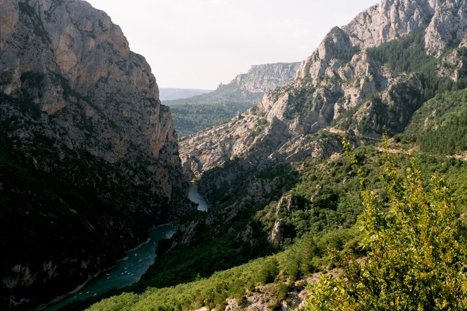 Budzę się o godz. 7.15. W worku biwakowym jest ciemno, natomiast gdy go otwieram od razu wita mnie dzień. Cisza aż dzwoni w uszach. Szybko zwijam legowisko, trochę pływam w jeziorze, później raczę się grochówką z bagietką. Ruszam. Przejeżdżam trochę ponad kilometr i zaczyna się łagodny podjazd. Docieram do uroczej wioski Aiguines. Trochę tu fotografuję – ładne witryny sklepów, ciekawe szyldy reklamujące np. „miel” czyli miód z pyłku lawendowego lub „chevre” – marynowany kozi ser, malownicze zaułki pełne kwiatów. Aiguines jest też stolicą boules, to tutaj w XVI w. powstały pierwsze bukszpanowe kule do gry. Im wyjeżdżam wyżej, tym rozciągają się piękniejsze widoki na kanion Verdon. Podjazd jest długi, ma aż 12,5 km. Droga bardzo często prowadzi przy skalnych ścianach, nad głębokimi przepaściami. Mijam kilka punktów widokowych. Przy jednym z nich obserwuję alpinistów, wspinających się po pionowych skałach. To jeden z europejskich rajów dla miłośników tego sportu. Pokonuję krótki tunel i dojeżdżam do kolejnej atrakcji na trasie wokół kanionu – Artuby, najwyżej położonego mostu Europy zawieszonego 180 metrów nad przepaścią. Przejeżdżam przez niego i znów muszę jechać pod górę. Niewiele dalej jest kolejne atrakcyjne miejsce na trasie – Balcons de la Mescla. Jest to punkt widokowy, z którego można podziwiać głęboko w dole przełom rzeki Verdon. Tutaj żegnam się z Verdon. W niemiłosiernym upale zdobywam ostatnią już na mojej trasie przełęcz wznoszącą się ponad 1000 m n.p.m. Stąd 10 km łagodnego zjazdu do wioski Comps-s-Artuby, gdzie robię sobie dłuższą przerwę odpoczywając w cieniu rozłożystego kasztanowca. Rozmawiam chwilę z motocyklistą, który zatrzymał się tu by coś przekąsić. Kolejny facet, który próbuje podnieść mój rower, a gdy mu się ta sztuka nie udaje stwierdza, że jestem szalony. Jadąc przeważnie w dół docieram do Draguignan, gdzie wybieram trasę D557. Mijam Flayosc i tuż przed zmrokiem docieram do Salernes. Gdy na miejscowym kempingu dowiaduję się, że za nocleg trzeba zapłacić 10 euro, jadę jeszcze parę kilometrów i nocuję w zagajniku tuż przy drodze. Cicho, spokojnie, bezpiecznie, a przede wszystkim za darmo.